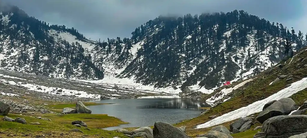 The Kareri Lake Trek is a short yet scenic Himalayan trek that leads to the pristine Kareri Lake (2,934 m / 9,626 ft), a freshwater glacial lake formed by the melting snow of the Dhauladhar range in Himachal Pradesh. Surrounded by lush meadows, dense forests, and snow-capped peaks, Kareri Lake is considered one of the most beautiful high-altitude lakes in India.